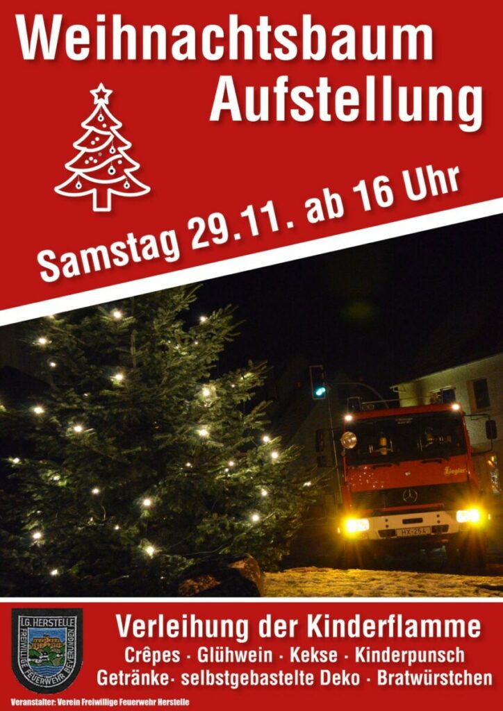 Weihnachtsbaum Aufstellung in Verein Freiwillige Feuerwehr Herstelle This event has ended Datum 29. November 2025 Zeit 16:00